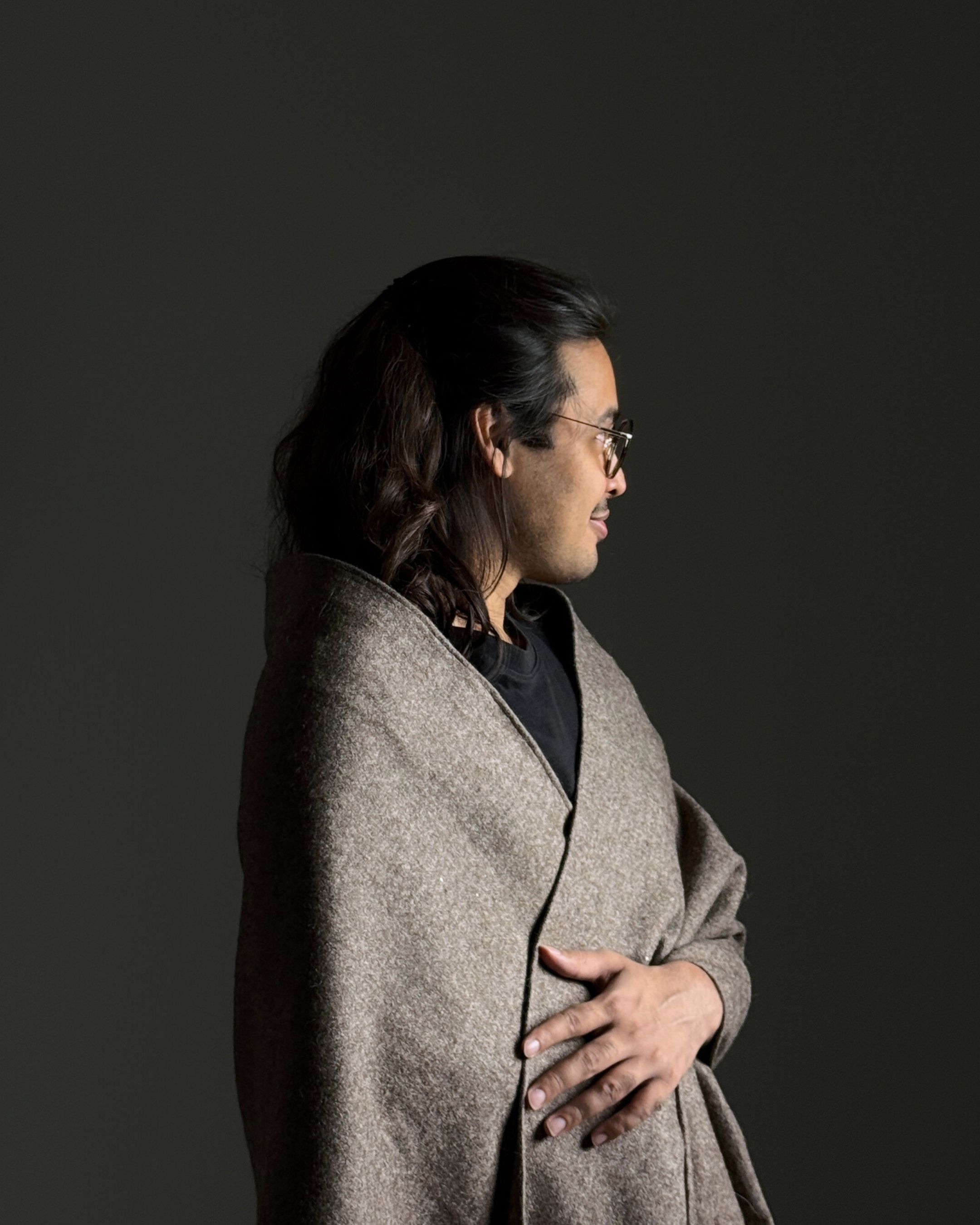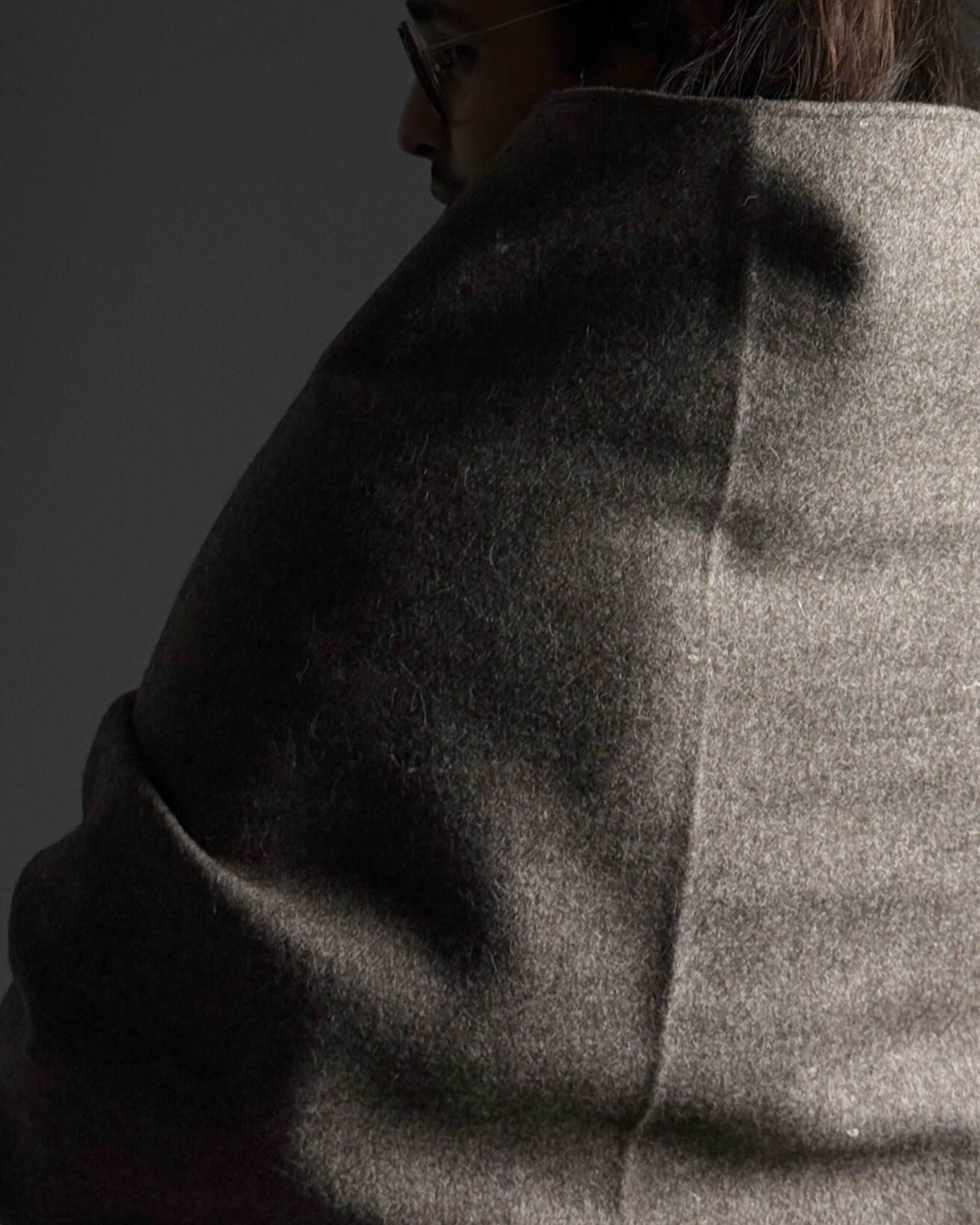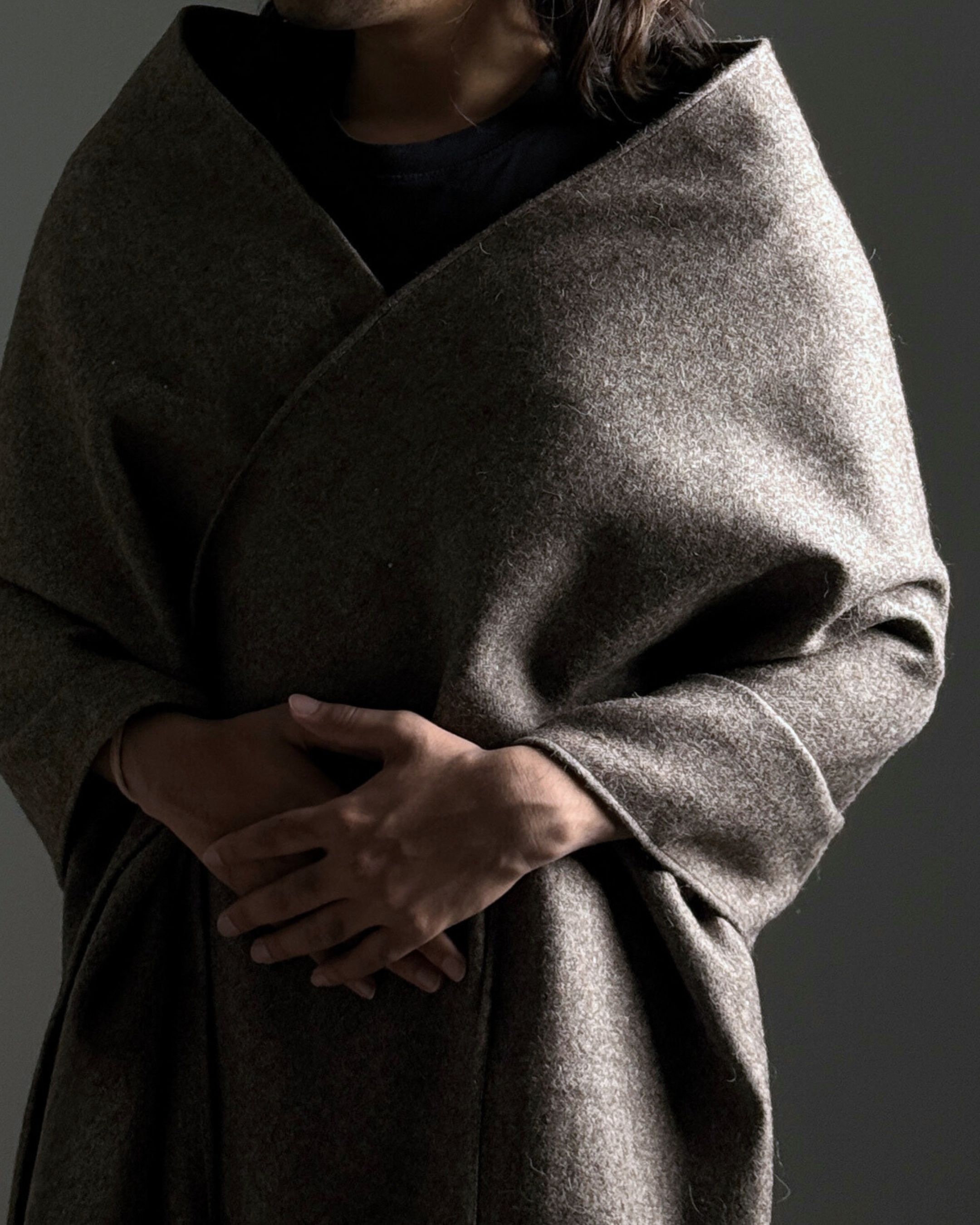 Rectangular loose upper body garment made with handwoven wool blend (75% sheep wool, 25% cotton). Handcrafted by artisans in India.