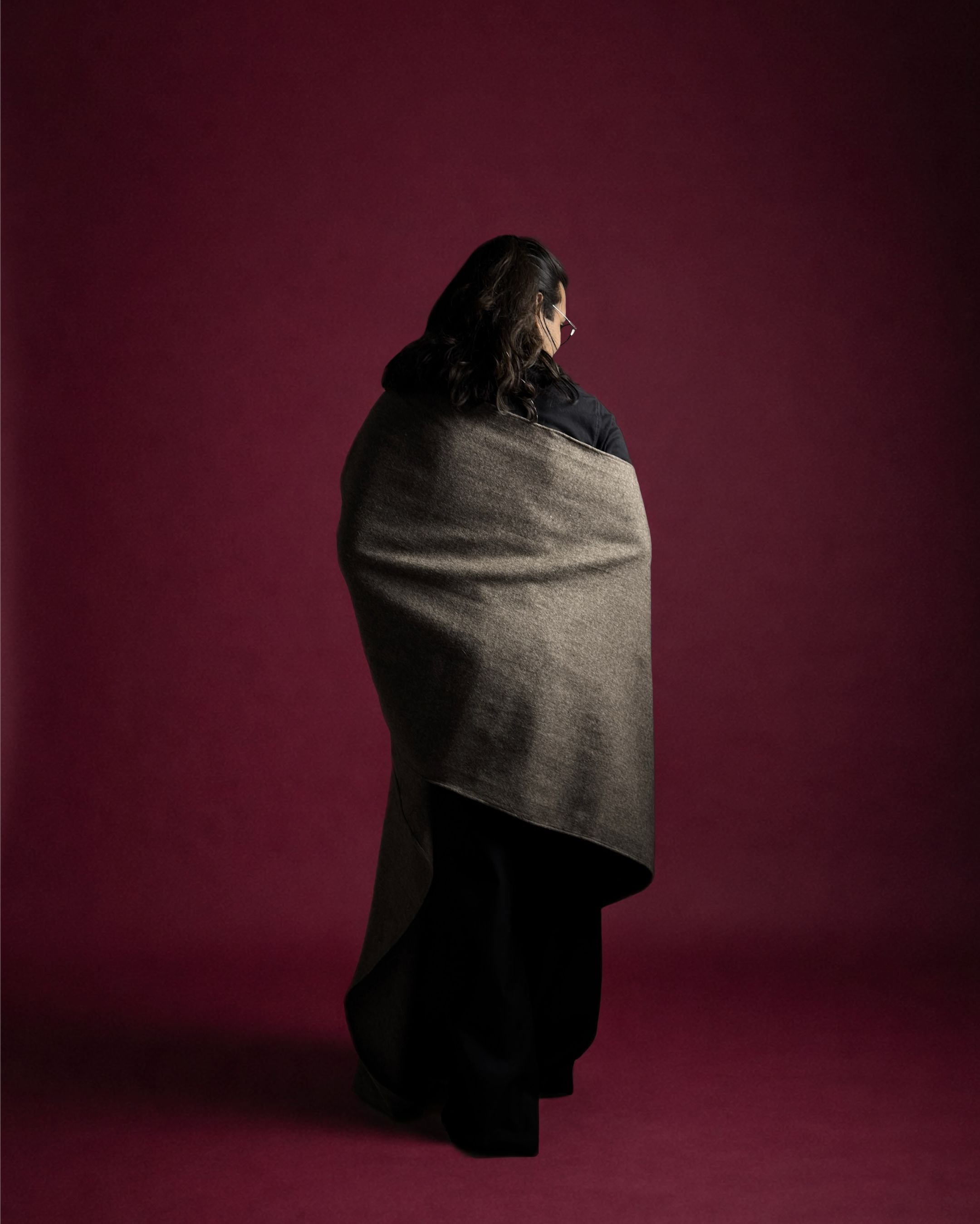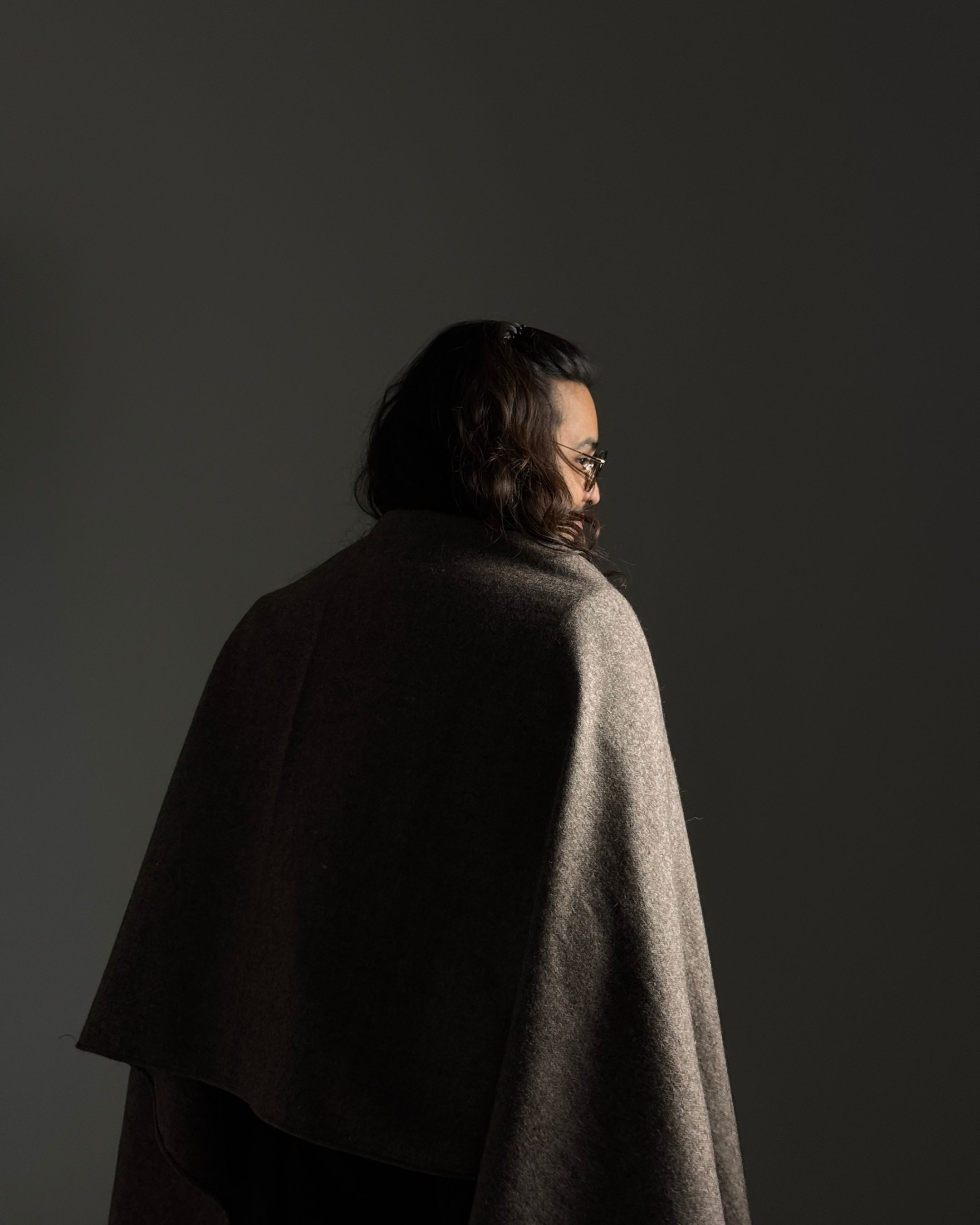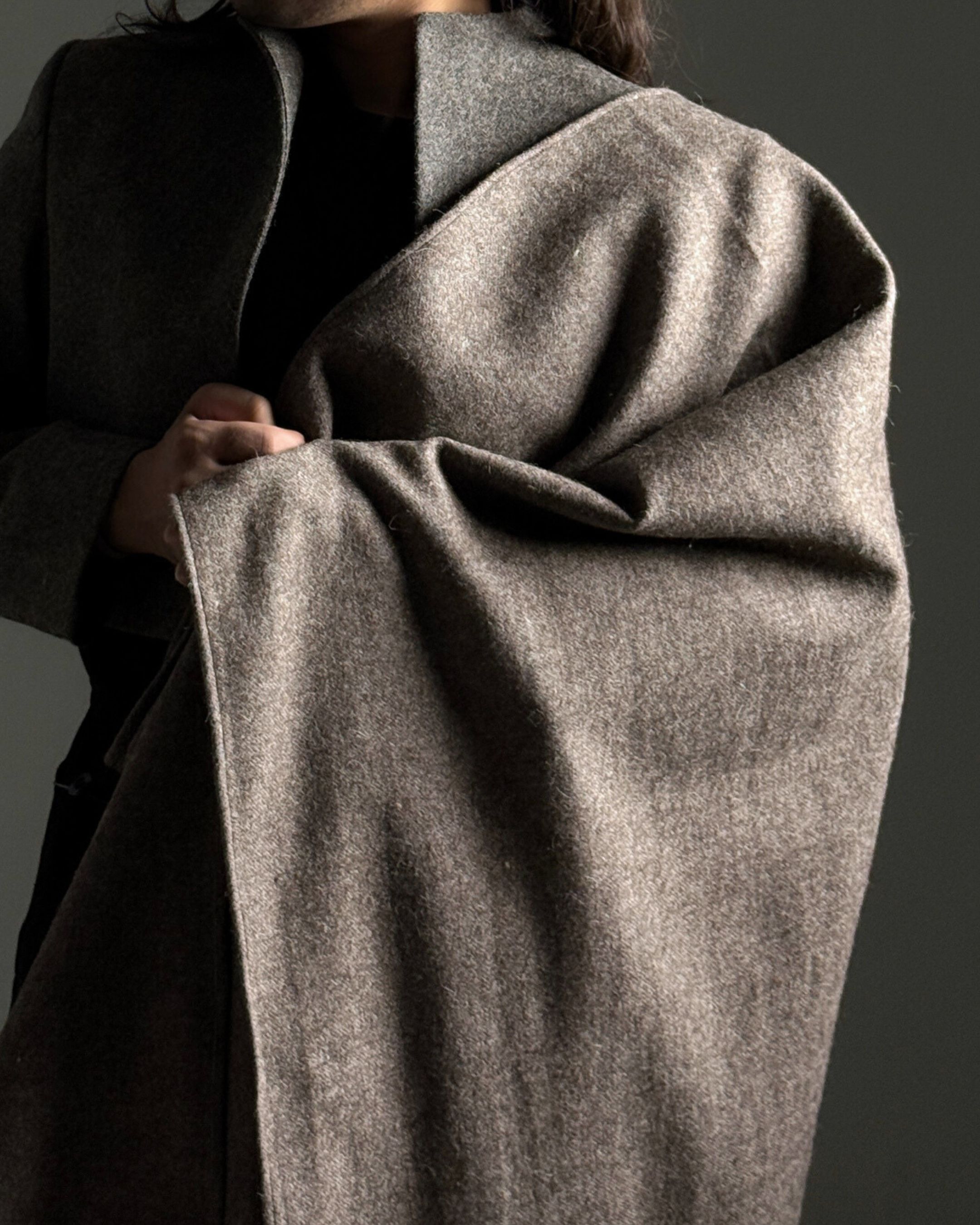 Rectangular loose upper body garment made with handwoven wool blend (75% sheep wool, 25% cotton). Handcrafted by artisans in India.